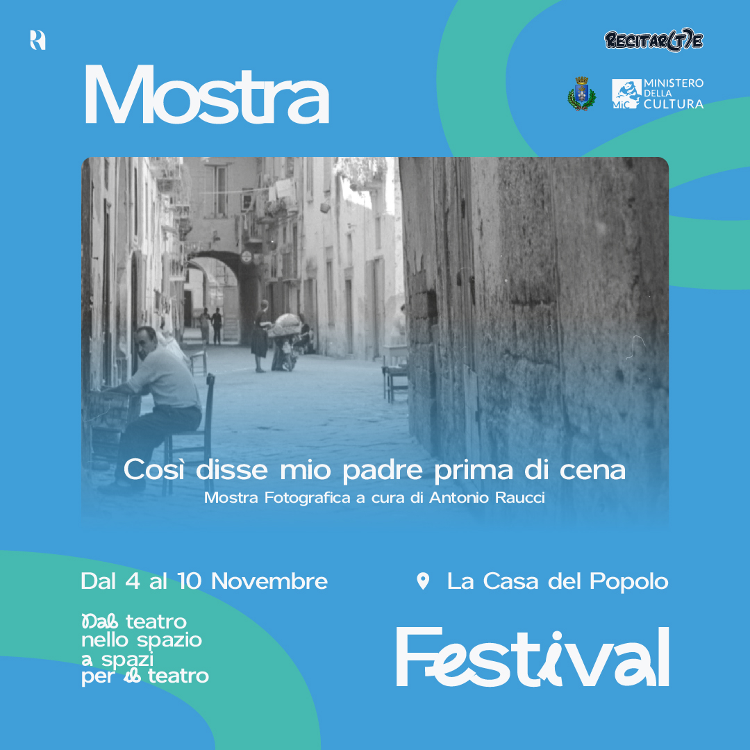 La quarta settimana del Festival inizia con un viaggio nel tempo: dal 4 al 10 Novembre presso La Casa del Popolo, è disponibile la mostra fotografica “Così disse mio padre prima di cena”, curata da Antonio Raucci 🎭